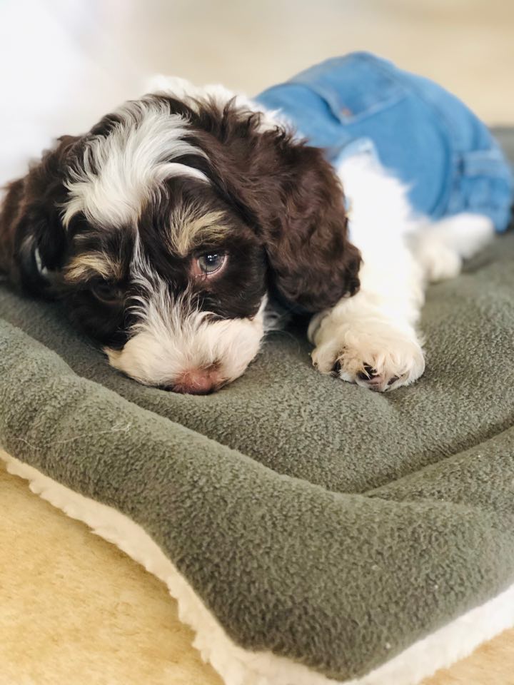 Our puppies are F2 Poovanese. This simply means that our pups are second generation Poovanese. Our parent dogs are first generation Poovanese (50% Poodle and 50% Havanese from AKC registered purebred parents), and breeding them together keeps the split 50-50, while allowing me to own my own Poovanese to snuggle and love on! When I discovered F2 breeding, which meant that I could not only breed the Poovanese puppies I love, but also have my own Poovanese that I love – I was hooked!